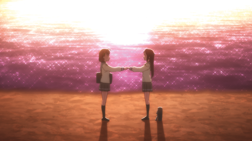 Was im Laufe der Geschichte mehrmals angedeutet wurde, wird nun gelüftet; nämlich der wahre Grund, weshalb sich Dia und Mari so sehr gegen eine School Idol-Gruppe sträuben: Die beiden waren vor einiger Zeit gemeinsam mit Kanan Matsuura selbst Teil einer solchen. Auch sie wurden damals nach Tokio eingeladen um auf einem Event aufzutreten, doch dort bekamen sie auf der Bühne keinen Ton heraus. Nach dieser Schmach löste sich die dreiköpfige School Idol-Gruppe auf. Wie sich bald herausstellt, hatte Kanan bei dem Wettbewerb in Tokio absichtlich nicht gesungen, und das allein, um Mari zu schützen – und nach einem klärenden Gespräch mit vielen Tränen treten die letzten drei Mädchen schlussendlich auch den Aqours bei.