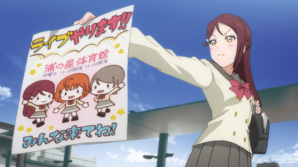 Die dritte, die Chika für ihren Club rekrutieren will, ist Riko Sakurauchi. Sie ist gerade erst von Tokyo nach Uchiura gezogen und ist auf der Suche nach Anschluss in ihrer neuen Schule. Was Chika besonders begeistert ist die Tatsache, dass Riko die selbe High School besuchte, wie ihre Idole von μ’s, nämlich die Otonokizaka High School. Zunächst lehnt Riko Chikas Bitte immer wieder ab, bevor sie sich letztendlich doch für die Idee begeistern lässt, gemeinsam mit Chika und You als School Idol aufzutreten. Doch schon taucht das nächste Problem für den Club auf: Die Schülervorsitzende Dia Kurosawa, welche für die AG-Anträge zuständig ist, stellt sich vehement gegen die Gründung des Clubs. Ist das Projekt damit wirklich zum Scheitern verurteilt?