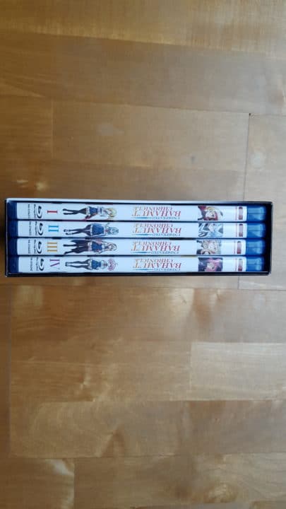 Mit dem vierten und finalen Volume der Serie wurde zudem auch der Inhalt des schicken Sammelschubers komplettiert, den Käufer als Beigabe zum ersten Volume des Anime erhalten haben. Dieser ist sehr Stabil und in ansprechendem Design gehalten. Er bietet locker genug Platz, um alle Einzelvolumes unterzubringen und ist dabei vielleicht sogar minimal zu großzügig. Sicherlich ist es nicht schön, wenn die einzelnen Discs in einem Sammelschuber gequetscht werden. Bei Undefeated Bahamut Chronicle hat man es mit dem Platzangebot aber sehr gut gemeint, so dass die Volumes leicht aus dem Schuber rutschen. Insgesamt gilt hier jedoch: lieber zu viel Platz, als zu wenig!