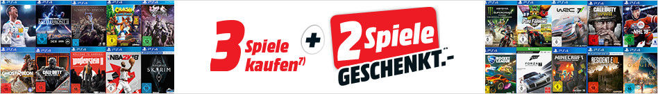 Media Markt zieht nach, allerdings im Bereich Spiele. Dort habt ihr die Möglichkeit euch 5 Spiele, auf das kompletten Spielesortiment, in den Warenkorb zu legen und die 2 günstigsten Spiele geschenkt zu bekommen. Die Preise, der 2 günstigsten Artikel, werden euch automatisch im Warenkorb abgezogen.