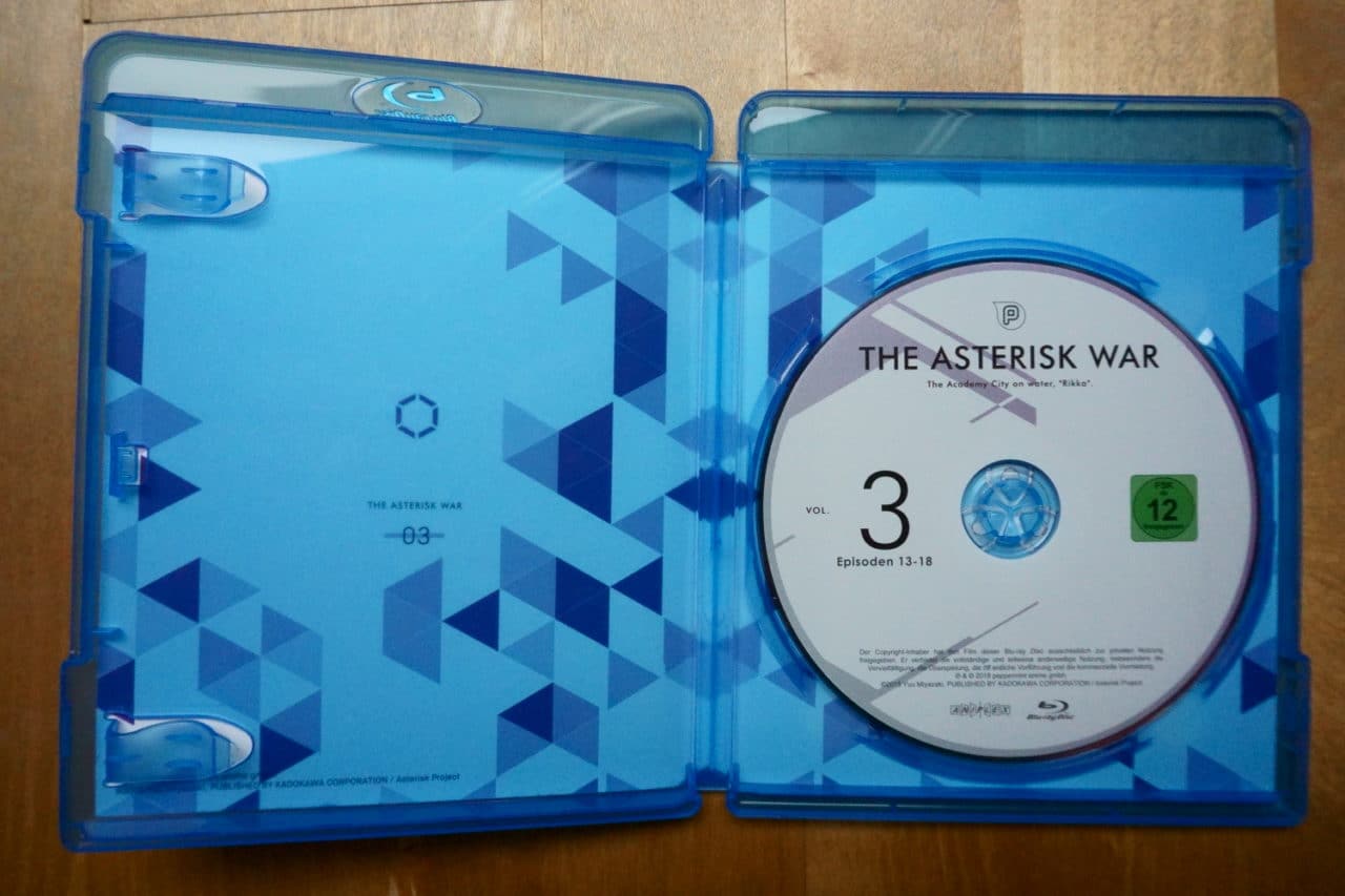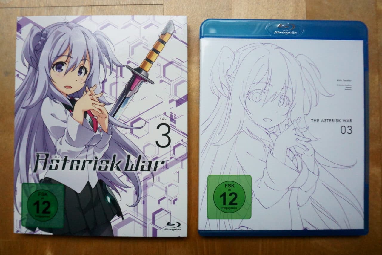 Ihr kennt es bereits: Die physische Umsetzung des Produkts ist natürlich wieder kein wertungsrelevanter Punkt unserer Kritik, soll euch aber ein Bild vom dem vermitteln, was ihr als Käufer erwarten könnt. Die folgende Beschreibung und die Bilder beziehen sich dabei auf die Blu-Ray-Version von The Asterisk War Volume 3.