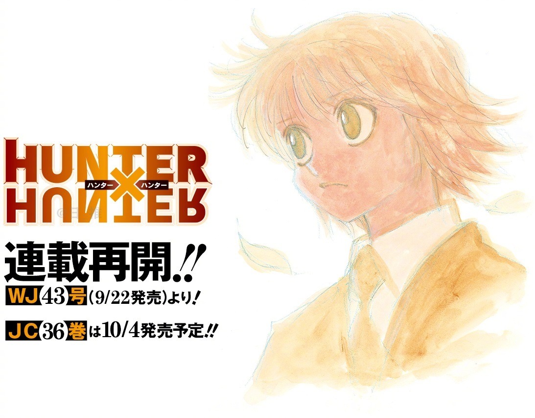 Wie nun in der aktuellen Ausgabe des ,,Weekly Shonen-Jump“-Magazins bekannt gegeben wurde, wird der seit April 2018 pausierende Manga ,,Hunter X Hunter“ von Yoshihiro Togashi am 22. September 2018 zurückkehren.
