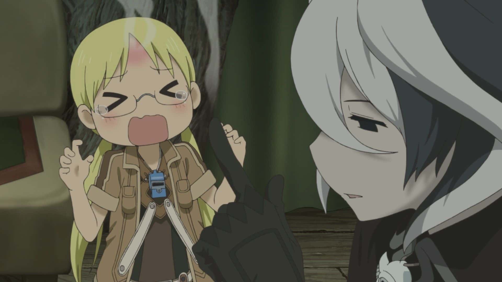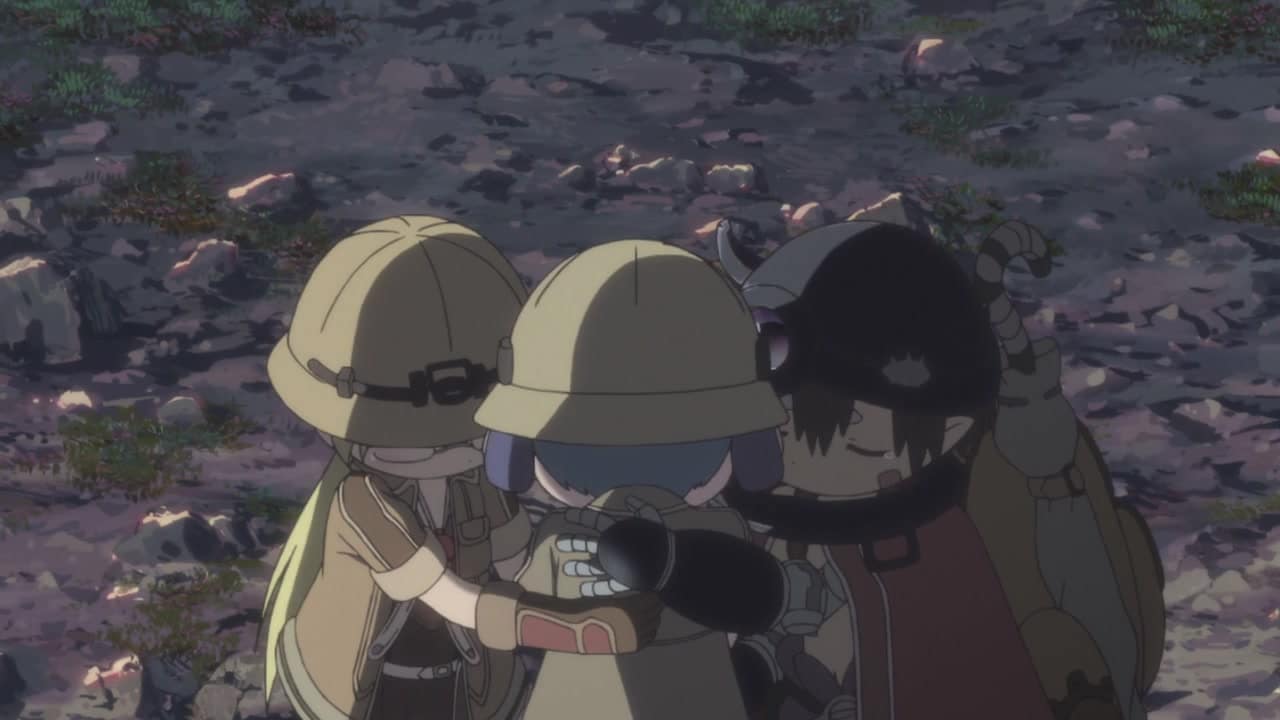 Darum wohl wissen bittet Riko ihren Kameraden darum, ihr den Arm abzutrennen. Dieser steht zwar völlig neben sich, beginnt jedoch damit die Knochen zu zertrümmern um den Schmerz des anschließenden Schnitts zu minimieren. Gerade als Reg bezüglich des Schnitts zur Tat schreiten will hört Riko jedoch auf zu atmen. Der völlig aufgelöste Reg wird in diesem Moment jedoch von einem seltsamen Wesen namens „Nanachi“ angesprochen, das ihm hilft, Rikos Atmung wieder in Gang zu bringen. Gemeinsam mit der verletzten und vergifteten Riko machen sich die beiden zu Nanachis Unterschlupf auf, wo sie Riko retten möchten.