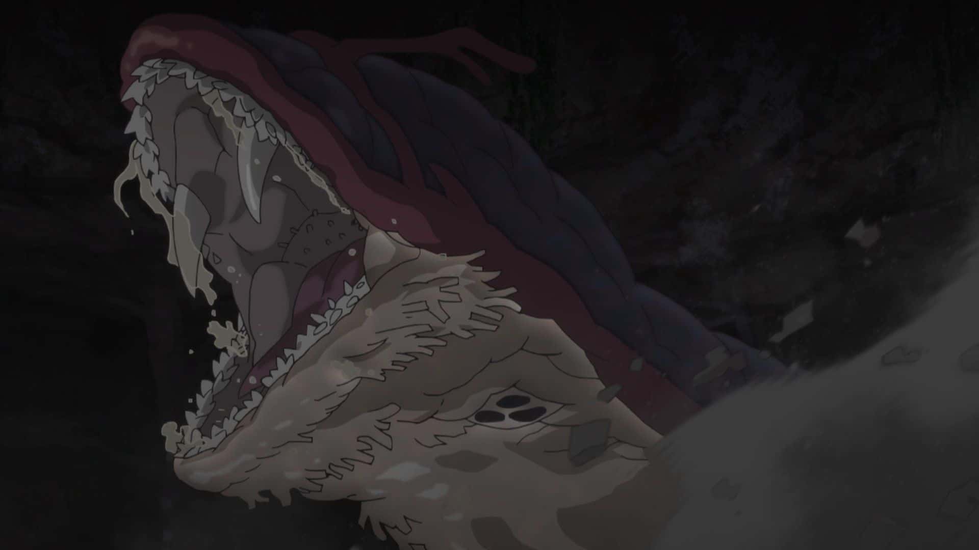 Tatsächlich gelingt es Riko und Reg anschließend bis in die vierte Tiefenschicht vorzudringen. Dort bekommt Reg jedoch ein seltsames Gefühl, das ihn in Alarmbereitschaft versetzt, nicht abgeschüttelt. Viel Zeit darüber nachzudenken bleibt jedoch nicht, denn urplötzlich taucht ein Kugelbohrer auf – ein weiterer gefährlicher Bewohner des Abyss. Diese Kreatur verfügt über Stacheln, die teilweise selbst Metall durchdringen können. In einem unachtsamen Moment wird Riko von einer dieser Stacheln an der Hand getroffen. Das Problem: Die Spitzen enthalten ein starkes Gift, das ohne Behandlung zum Tod führen kann.