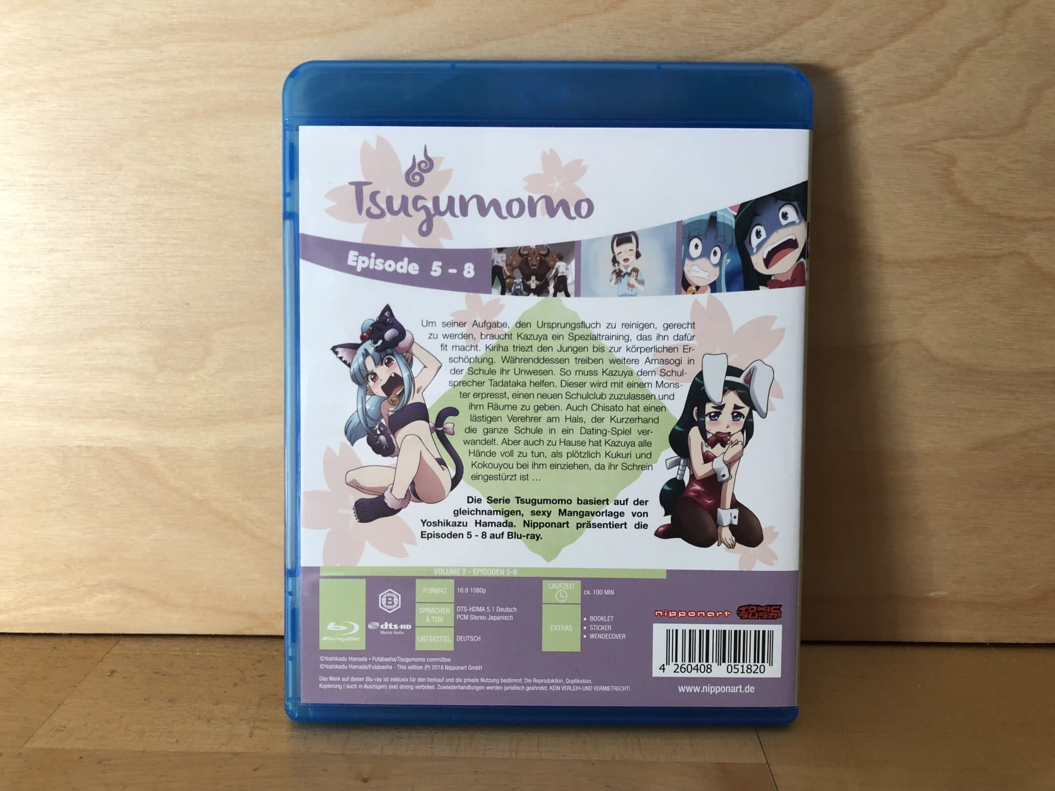 Ihr kennt es natürlich: Wie von uns gewohnt fließt die physische Umsetzung des Produkts nicht in die Gesamtwertung unseres Reviews ein. Dennoch enthalten wir euch eine Beschreibung derselben nicht vor, damit ihr euch als potenzielle Käufer ein Bild des Produkts machen könnt. Die nachfolgenden Beschreibungen und Bilder beziehen sich dabei auf die Blu-Ray-Version des zweiten Volumes von „Tsugumomo“.