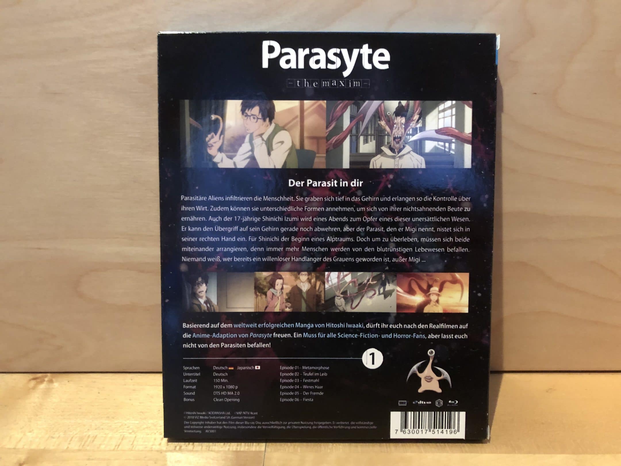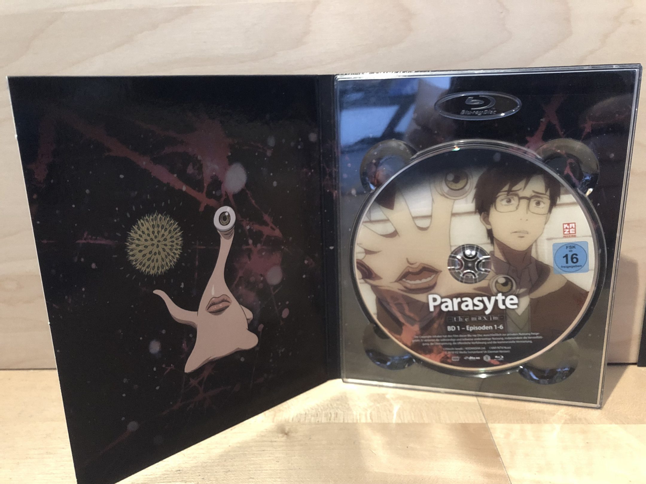 Aus unseren weiteren Reviews wisst ihr bereits, dass die physische Aufmachung des Produkts nicht zur Gesamtwertung unserer Rezension zählt. Wann immer möglich liefern wir euch dennoch eine Beschreibung und Fotos des Produkts um euch als potenziellen Käufern einen Einblick in das zu geben, was euch bei einem Erwerb erwartet. Diesmal beziehen sich alle nachfolgenden Informationen und Fotos auf die limitierte Blu-Ray-Version des ersten Volumes von „Parasyte – the maxim“.