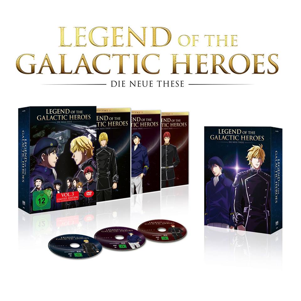 Nachdem zunächst die Designs der ersten beiden Volumes der Serie „Legend of the Galactic Heroes: Die neue These“ enthüllt worden waren, präsentierte Universum Anime mittlerweile auch das Design des dritten Volumes und des zugehörigen Sammelschubers.