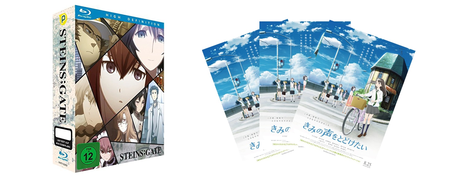• 1. Preis: Steins;Gate Vol. 1 Limited Edition mit Sammelschuber [Blu-Ray] signiert von MAGES-Produzent Tatsuya Matsubara, Synchronsprecherin Manuela Bäcker (Kurisu Makise in Steins;Gate) sowie Synchronsprecher Marios Gavrilis (Rintarou Okabe alias Hououin Kyouma in Steins;Gate)