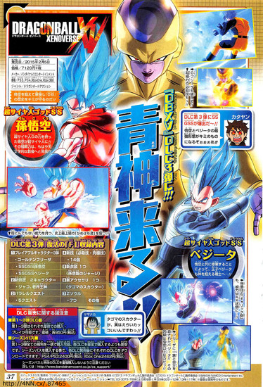 Im 3. DLC für Dragonball Xenoverse wird nicht nur Golden Freezer mit dabei sein, wie die Doppeausgabe des Weekly Shonen Jump Magazins berichtet, wird auch Super Saiyajin Gott Super Saiyajin Son Goku und Vegeta auch im 3. DLC mit enthalten sein. So sind alle 3 wichtigen Figuren aus Dragon Ball Z: Fukkatsu no F im Spiel enthalten.