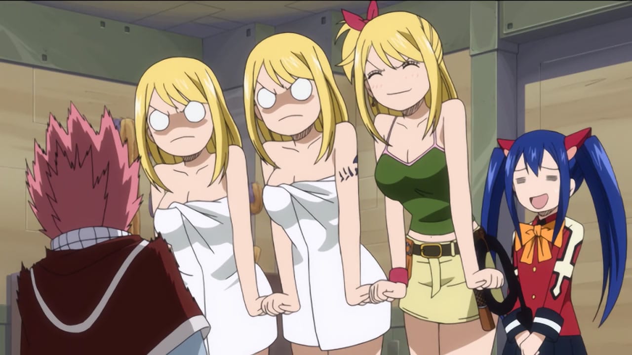 Mit der Hilfe von Edo-Lucy und Edo-Natsu, gelangen Natsu, Wendy, Carla und Happy nicht nur zur königlichen Hauptstadt des Reiches, wo ihre Gilde und die Menschen von Magnolia als riesige Lakrima der Welt von Edolas als Magiequelle dienen sollen, sondern treffen auf diesem Weg auch auf Earthland-Lucy, die sich durch Horologium vor der Absorption durch Edolas retten konnte und anschließend vom mysteriösen Mystogan nach Edolas geschickt wurde. Das Verrückte: Während Wendy und Natsu in Edolas keinerlei Magie nutzen können, so kann Lucy ihre Stellargeister ganz normal rufen, was der Gruppe das ein oder andere Mal eine große Hilfe ist.