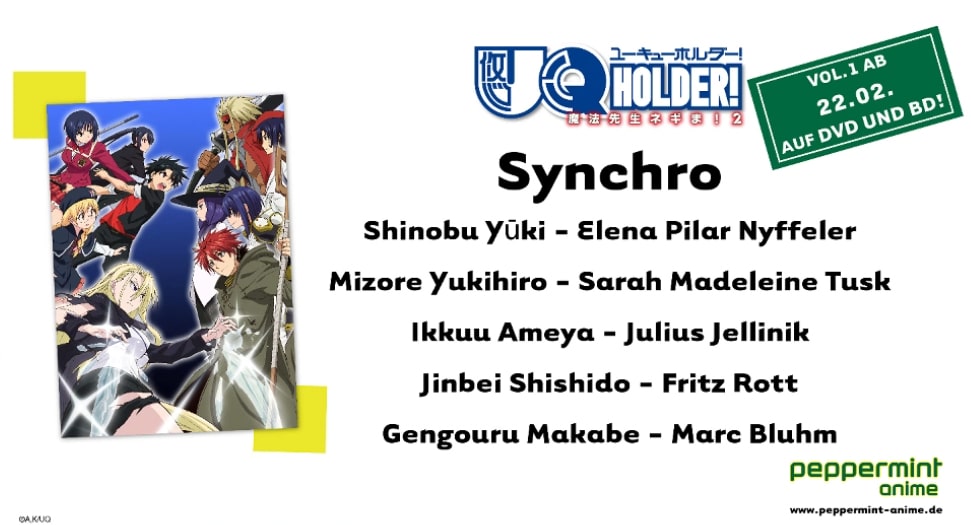Nachdem die gesamte Serie „UQ Holder“ nun bereits eine Weile vorbestellbar ist, gab peppermint anime nun die an der deutschen Synchronfassung beteiligten Sprecher bekannt.