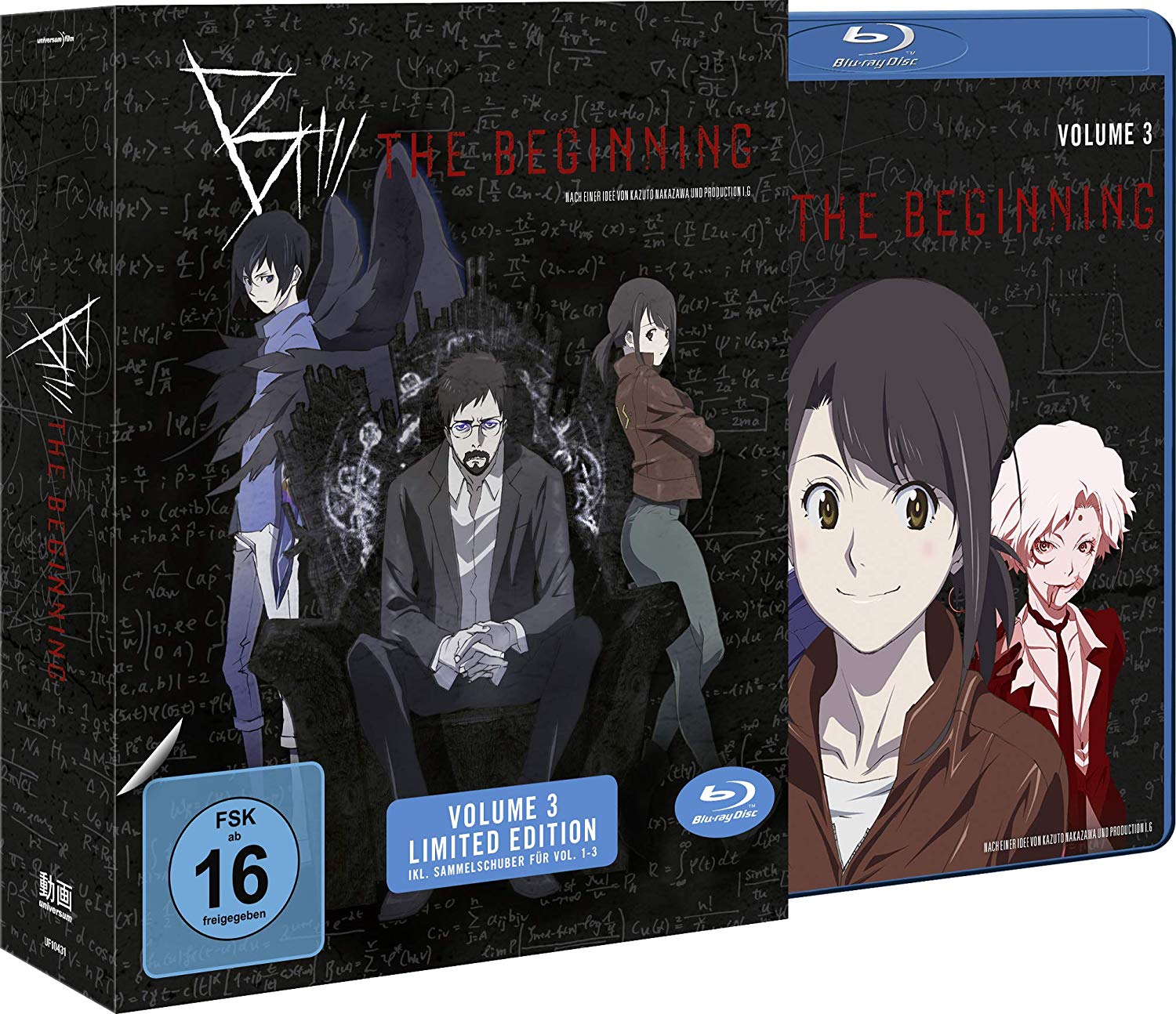 Mit der Veröffentlichung der Serie „B: The Beginning“ startet Universum Anime zwar erst in einigen Tagen, doch nun enthüllte der Publisher bereits die Designs des dritten Volumes sowie des Sammelschubers zum Anime.