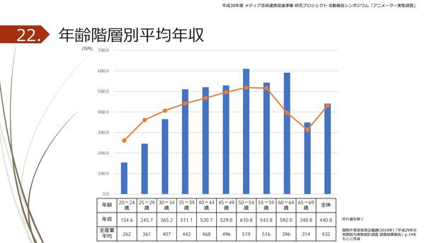 Laut den Umfrageergebnissen liegt das durchschnittliche Jahreseinkommen in der Anime-Industrie bei circa. 4.410.000 Yen (40.000 USD). Dies sind eine Million Yen mehr als noch vor fünf Jahren. Darüber hinaus erhöhte sich das Durchschnittseinkommen für jeden Beschäftigten um mindestens 90.000 Yen (812 US-Dollar). Insgesamt liegt das durchschnittliche Einkommen in der Anime-Branche über dem nationalen Nettoeinkommen (circa. 4.322.000 Yen umgerechnet 38.939 Dollar) aller japanischen Arbeitnehmer.
