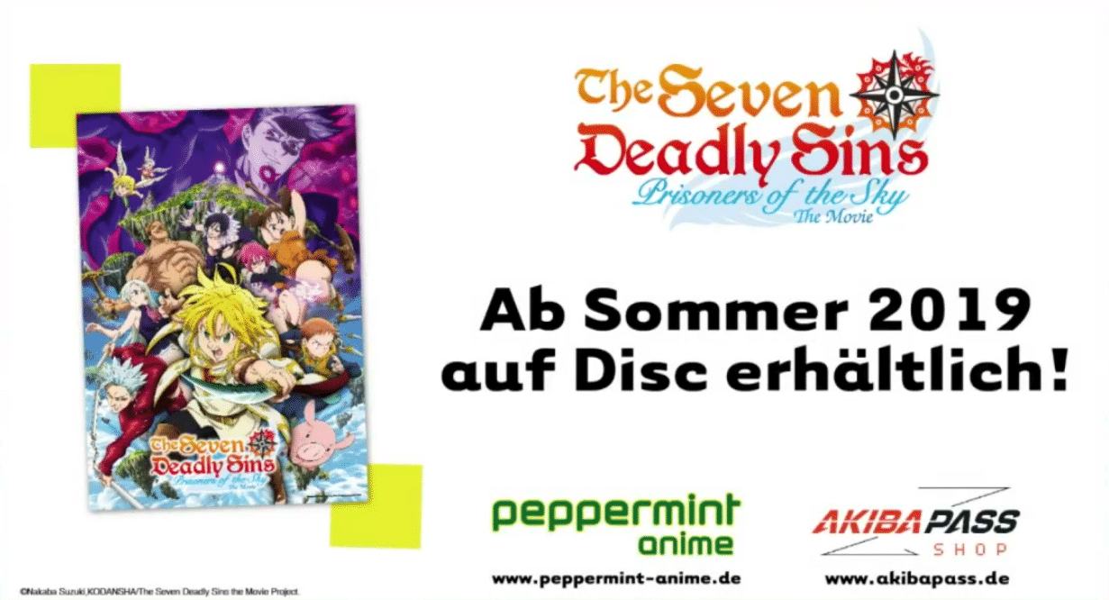 Demnach wird man „The Seven Deadly Sins: Prisoners of the Sky“ bereits im Sommer 2019 in den Handel bringen. Auf der AnimagiC 2019 wird man einen exklusiven Pre-Sale des Films veranstalten, der offiziell erst nach der Veranstaltung im Handel erscheinen soll.