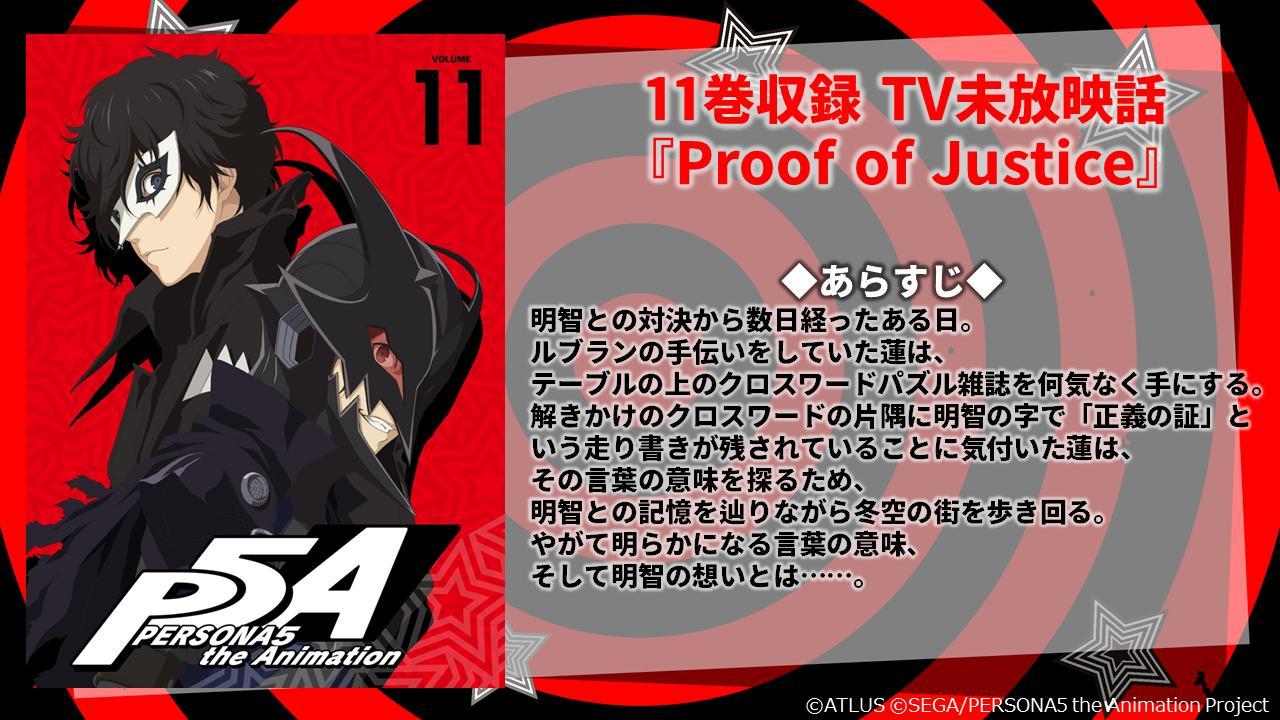Die Episode trägt den Titel „Proof of Justice“ und soll in Japan am 29. Mai 2019 ausgestrahlt werden. Die zugehörige Anime-Serie entstand unter der Regie von Masashi Ishihama (From the New World) bei Studio A-1 Pictures. Das Konzept der Original-Story wurde dem Produzenten des Spielefranchises Katsura Hashino zugeschrieben. Satomi Ishikawa (Convenience Store Boy Friends) adaptierte dabei die originalen Charakterdesigns von Shigenori Soejima für die Animation. Für das Skript zeigte sich indes Shinichi Inotsume (Hayate the Combat Butler) verantwortlich. Sowohl der Opening-Song „Break in to Break Out“ als auch der Ending Song „Infinity“ wurden von Lyn beigesteuert.