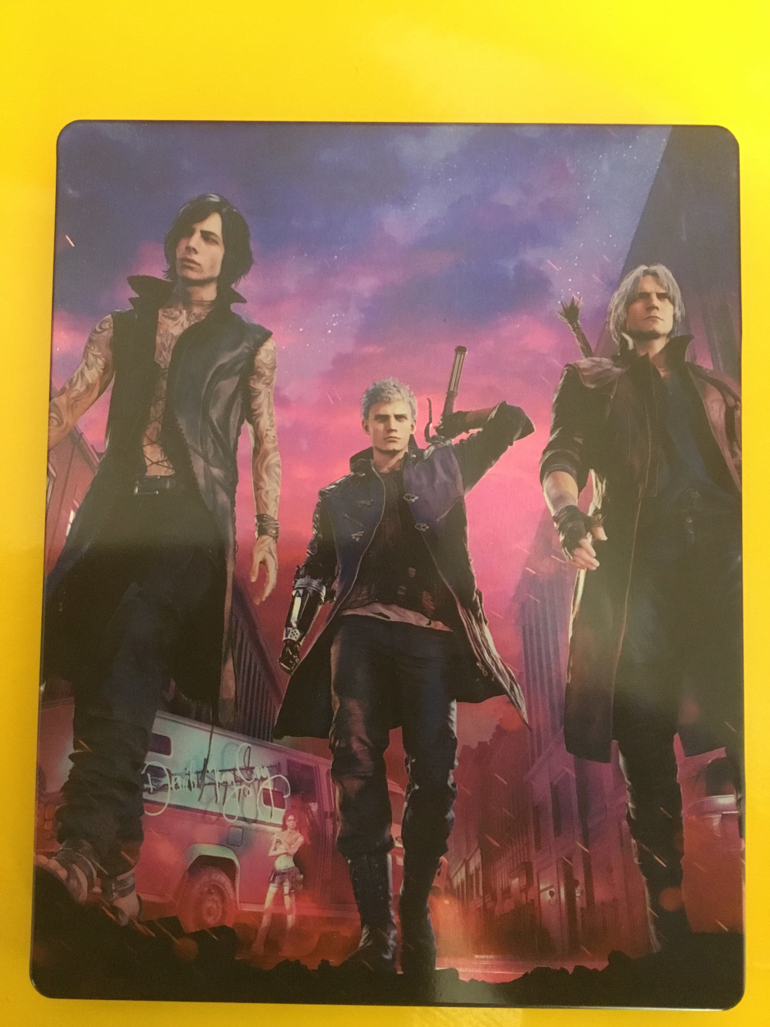Auch wenn die physischen Extras kein wertungsrelevanter Punkt des Reviews sind, so sollen sie doch erwähnt und aufgezeigt werden, da sie natürlich für mögliche Käufer des Spiels von Interesse sind. Für unser Review stand uns die edle Steelcase Edition zur Verfügung. Auf diesem sind die Protagonisten Dante, Nero und V zu sehen, die sich auf dem Weg zum Dämonenbaum machen.