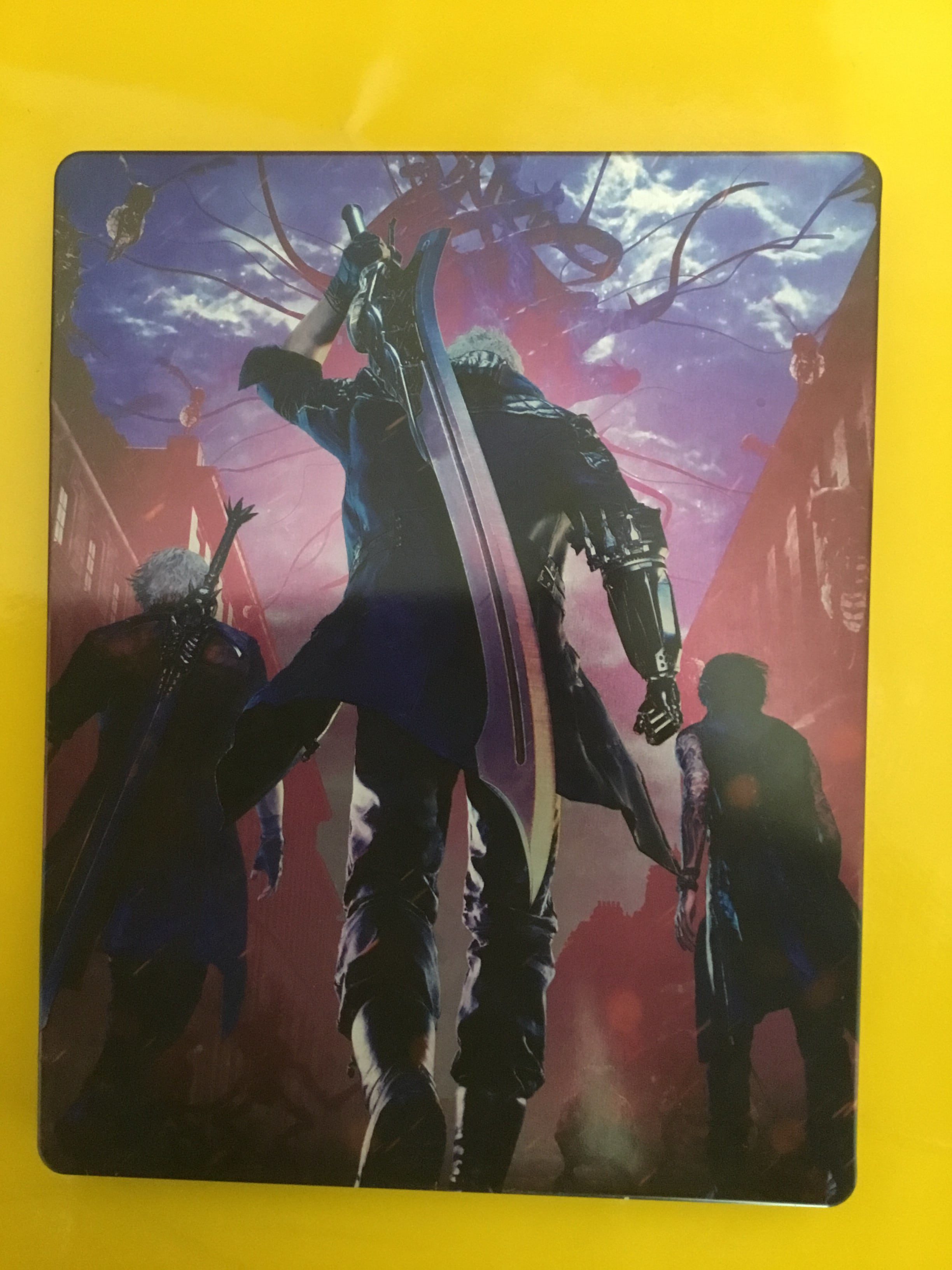 Auch wenn die physischen Extras kein wertungsrelevanter Punkt des Reviews sind, so sollen sie doch erwähnt und aufgezeigt werden, da sie natürlich für mögliche Käufer des Spiels von Interesse sind. Für unser Review stand uns die edle Steelcase Edition zur Verfügung. Auf diesem sind die Protagonisten Dante, Nero und V zu sehen, die sich auf dem Weg zum Dämonenbaum machen.