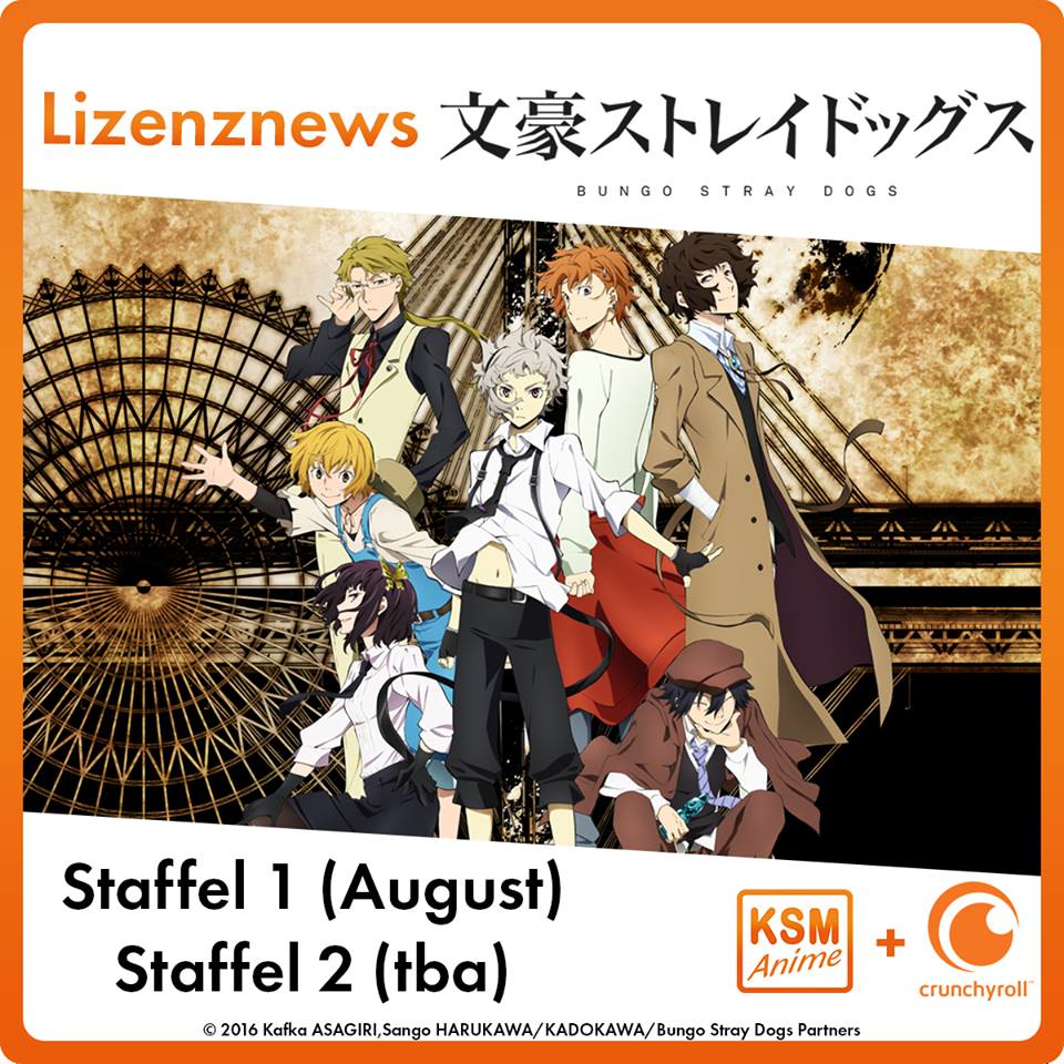 Wie KSM Anime mitteilte, hat sich der Publisher eine weitere Lizenz eines Animes geholt, der derzeit beim Streamingdienst Crunchyroll läuft: Bungo Stray Dogs. Die erste Staffel des Mystery-Hits soll bereits ab August als limitierte Komplettbox im Hardcoverschuber mit drei Digipacks erhältlich sein, während die Lizenz für Staffel 2 auch angekündigt wurde, allerdings ohne einen konkreten Erscheinungstermin zu nennen. Auf der AnimagiC wird die erste Staffel schon vor dem offiziellen Verkaufsstart am KSM-Stand erwerbbar sein.