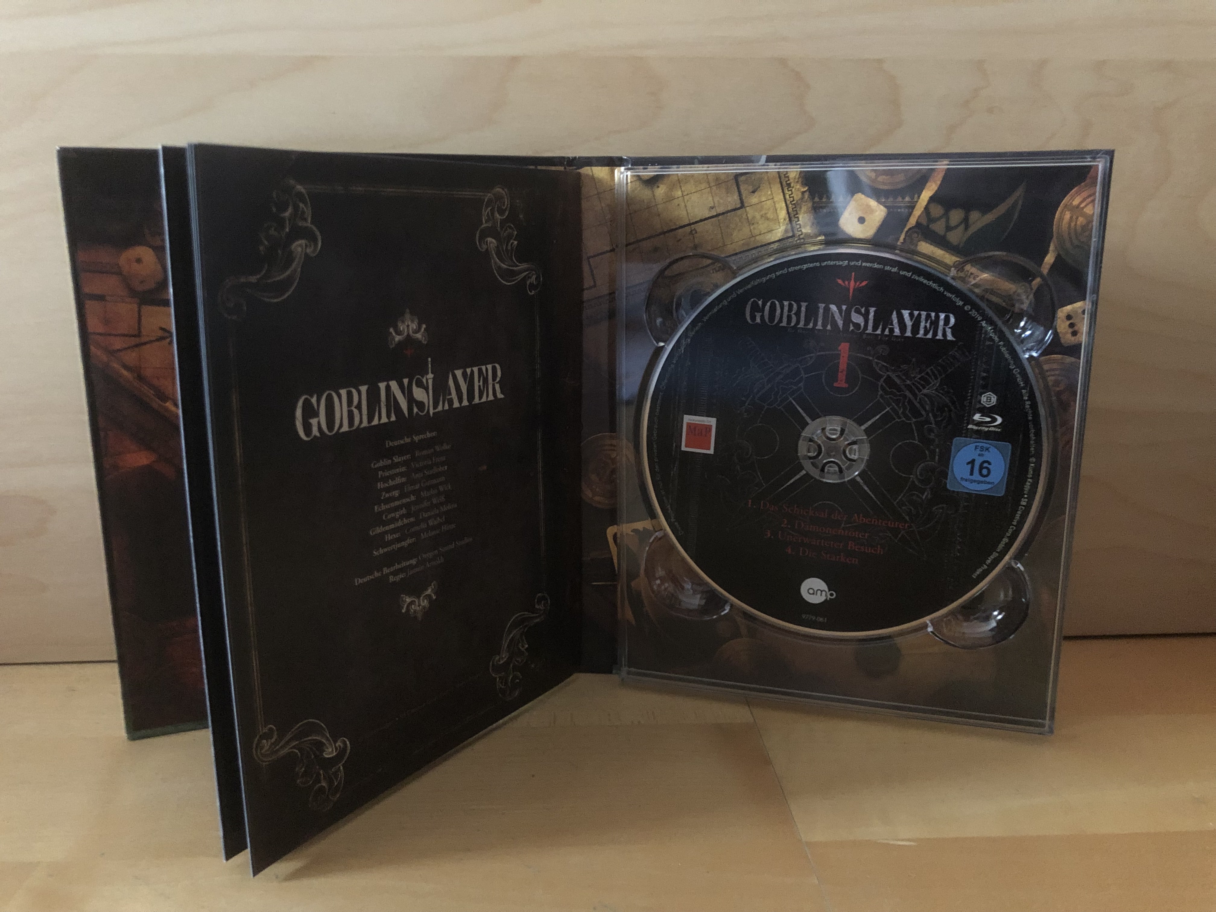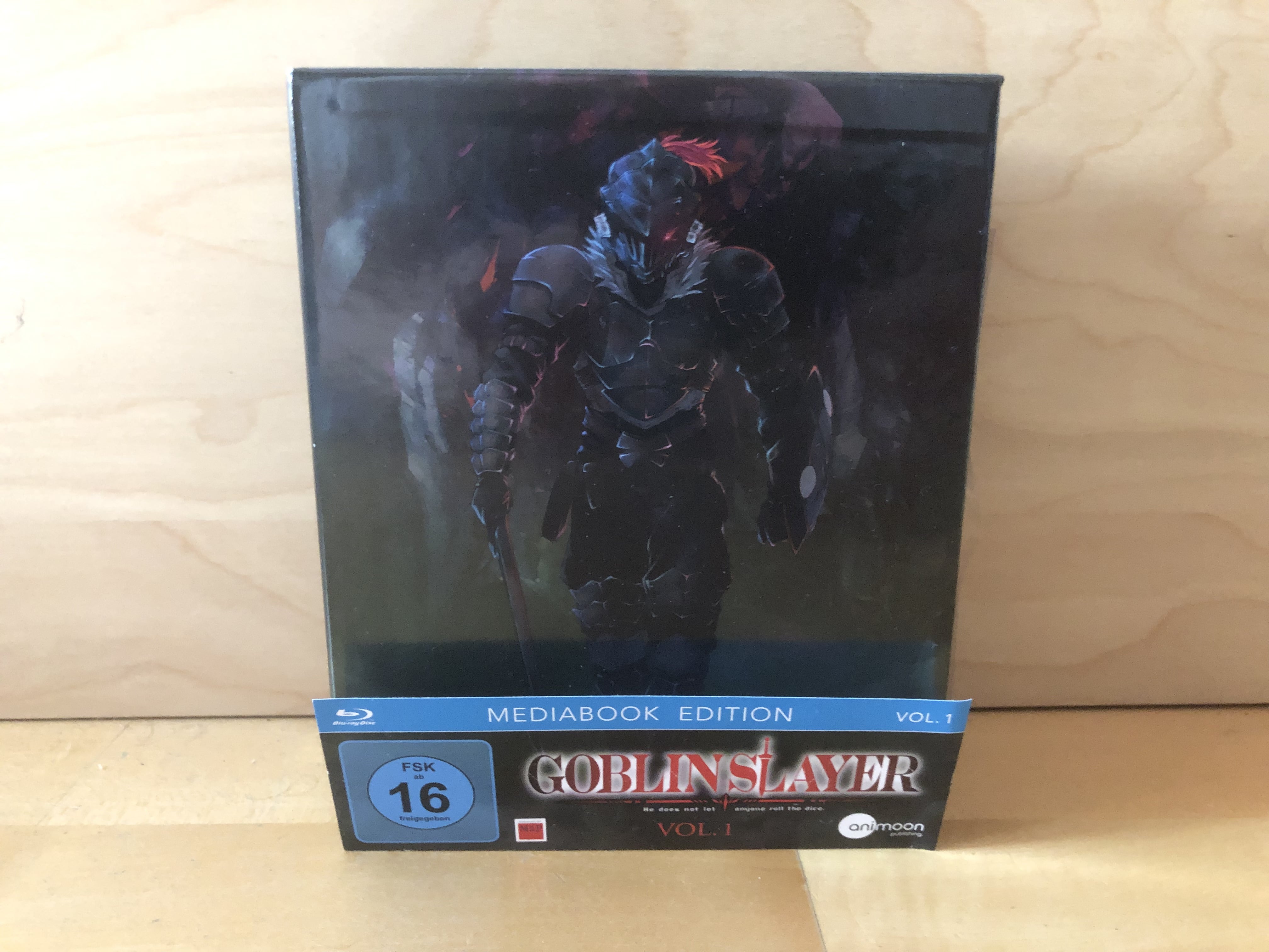 Wie ihr es bereits aus unseren weiteren Reviews kennt, stellt die physische Umsetzung des Produkts auch diesmal keinen wertungsrelevanten Punkt unserer Rezension dar. Dennoch möchten wir euch einige Bilder und eine Beschreibung nicht vorenthalten, um euch als potenziellen Käufern die Entscheidung für oder gegen das Produkt zu erleichtern. Die nachfolgenden Informationen beziehen sich dabei auf die uns zu Reviewzwecken zur Verfügung gestellte Limited Mediabook Edition des ersten Blu-Ray-Volumes von „Goblin Slayer“.