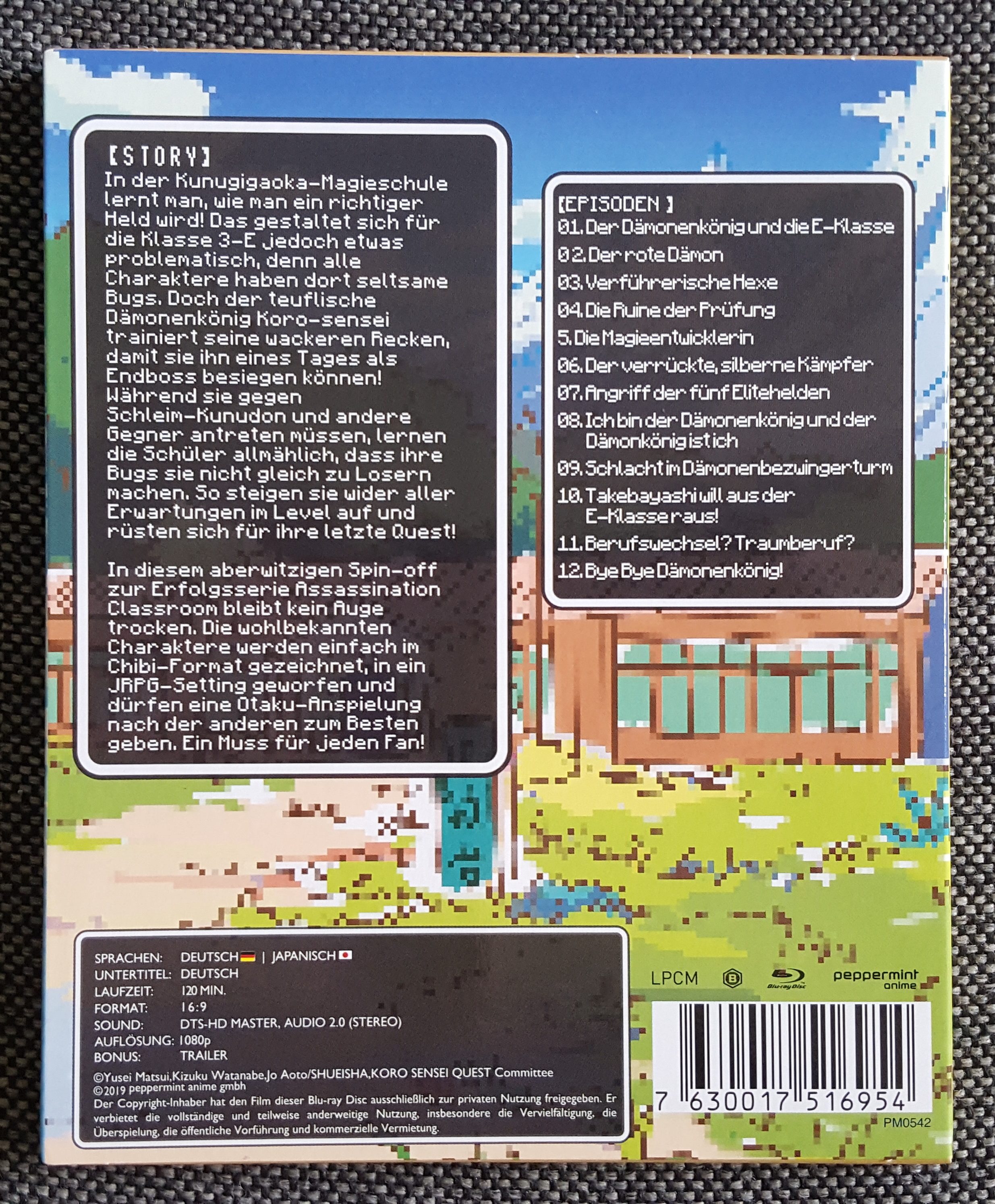 Wie ihr es bereits kennt: Die physische Umsetzung des Produkts ist natürlich wieder kein wertungsrelevanter Punkt unserer Kritik, soll euch aber ein Bild vom dem vermitteln, was ihr als Käufer erwarten könnt. Die folgende Beschreibung und die Bilder beziehen sich dabei auf die Blu-Ray-Version von „Korosensei Quest!“.