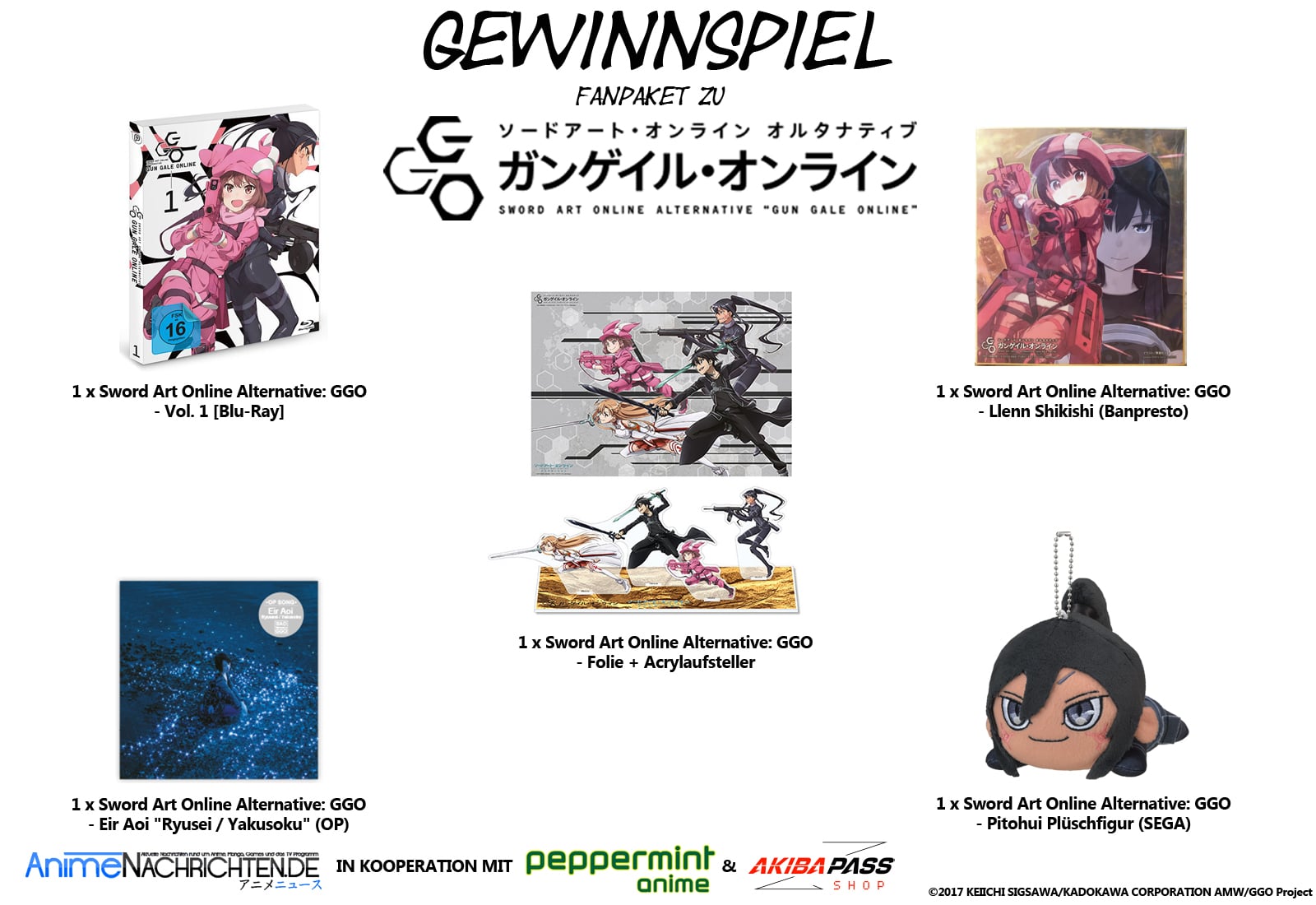 Um diese Veröffentlichung gebührend zu feiern, könnt ihr bei uns nun in Kooperation mit peppermint anime und dem AKIBA PASS SHOP ein schickes Fanpaket zur Serie gewinnen. Dank peppermint anime befindet sich darin das erste Volume der Serie auf Blu-Ray. Der AKIBA PASS SHOP steuert dazu noch das Opening des Anime auf CD sowie schicke Acrylaufsteller und eine Folie zur Serie bei. Zudem darf sich der Gewinner oder die Gewinnerin auch auf ein Druck-Shikishi mit Llenn-Motiv und eine Plüschfigur des Charakters Pitohui freuen, die wir von unserer letzten Japan-Reise mitgebracht haben.