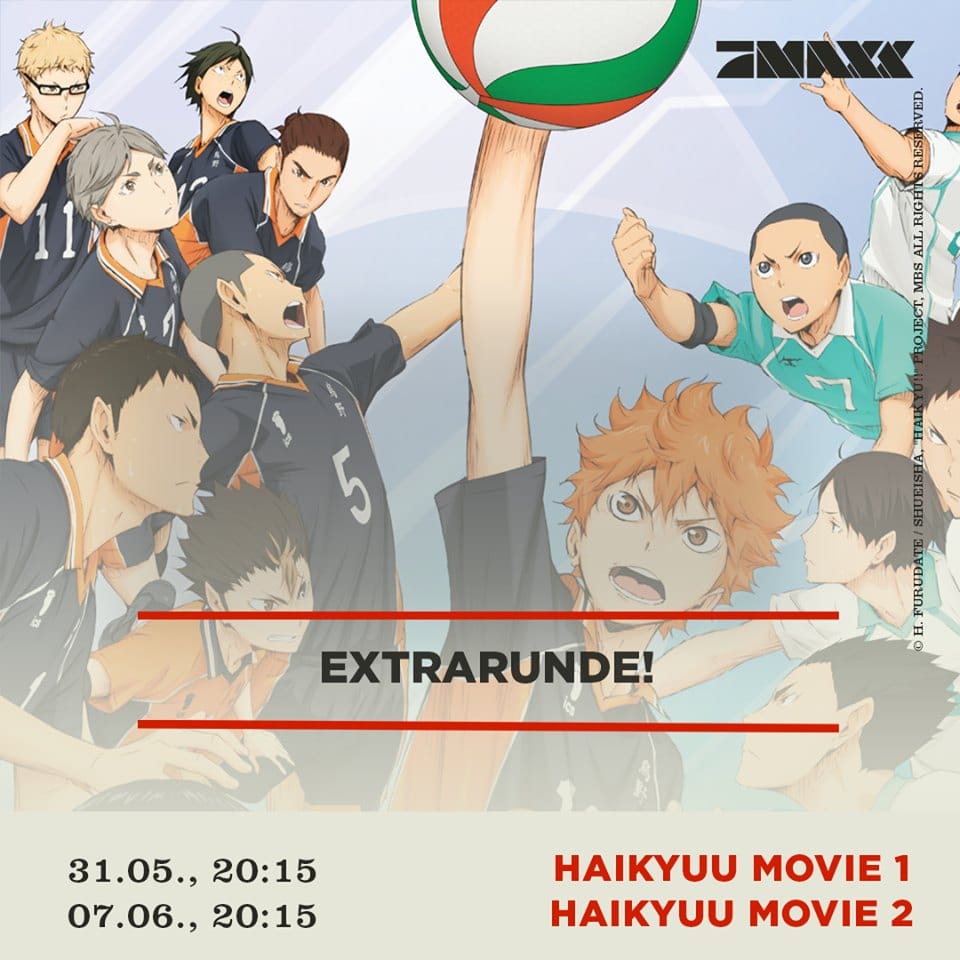 Vor kurzer Zeit begann die dritte Staffel des Sportanime Haikyu!! auf ProSieben MAXX, direkt im Anschluss an Staffel 2. Diese beginnt mit dem Finale des Präfekturvorentscheides, bei dem die Teams der Schulen von Karasuno und Shiratorizawa um die Teilnahme bei den nationalen Meisterschaften kämpfen. Nun kündigte der Sender an, nach dem Finale an zwei Freitagen (31.05.2019 und 07.06.2019) die ersten beiden Haikyu!! Filme um 20:15 Uhr zu zeigen.