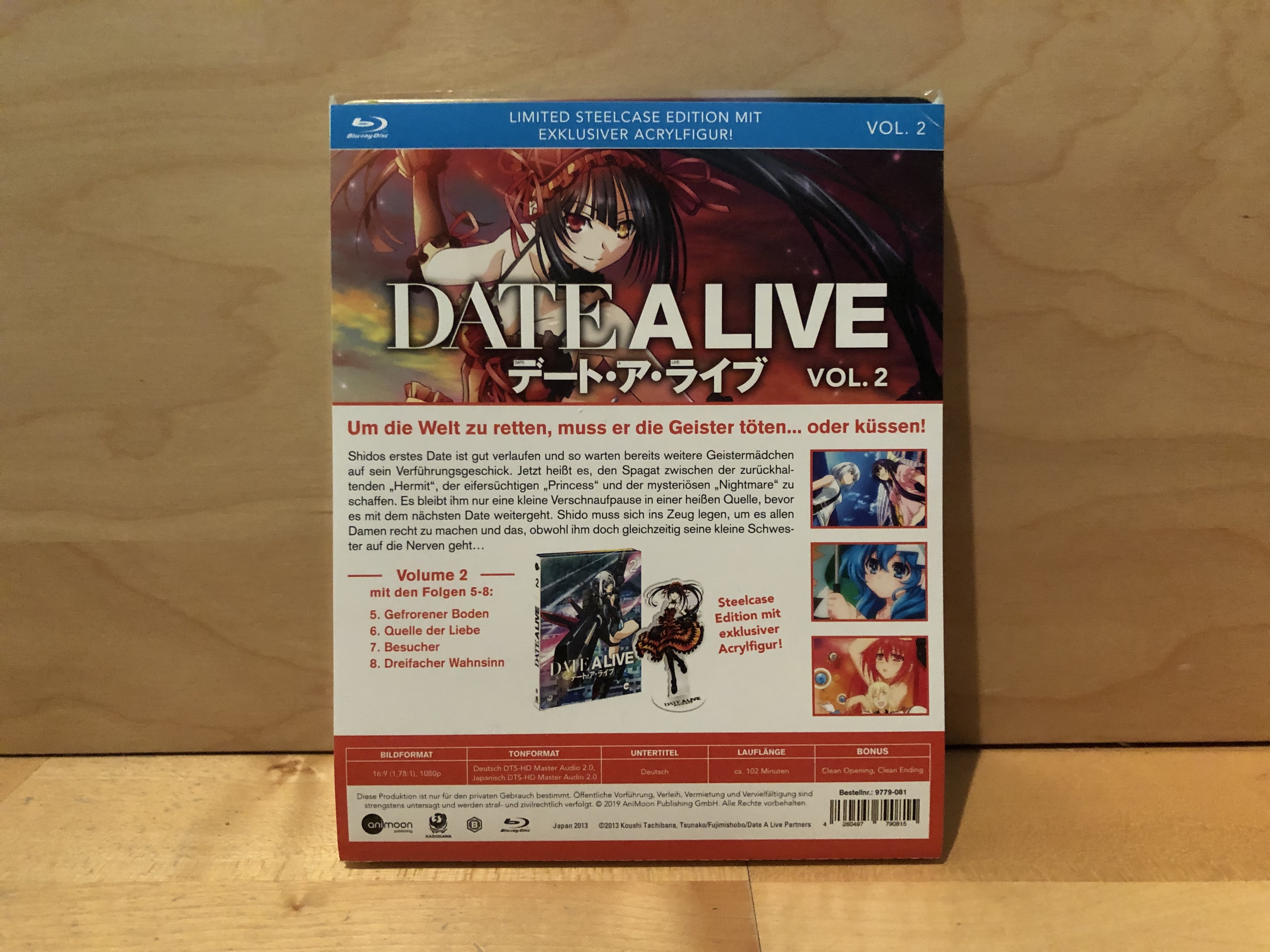 Wie gehabt: Auch diesmal stellt die Aufmachung des Produkts keinen wertungsrelevanten Teil unserer Review dar. Die nachfolgende Beschreibung dient euch als potenziellen Käufern daher einzig und allein dazu, eine bessere Entscheidung fällen zu können. Alle folgenden Informationen und Bilder beziehen sich dabei auf die Steelcase Edition des zweiten Volumes von „Date A Live“ in der Blu-Ray-Version.