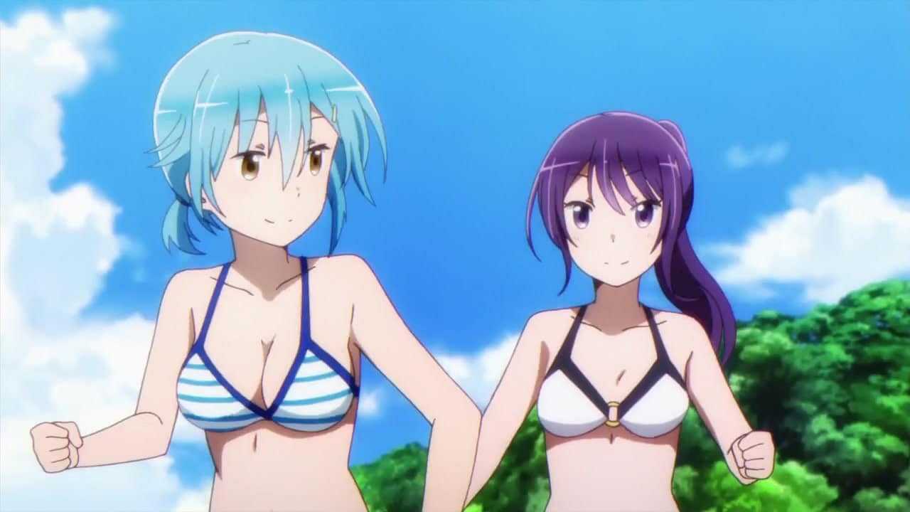 Wie fast jeder Anime, der auch nur einen Funken Fanservice beinhaltet, hat auch Comic Girls eine Bikinifolge zu bieten und mit dieser geht Volume 2 auch direkt los. Die vier Mädchen sind zum Strand gefahren. Dabei hat am Anfang lediglich die gut gebaute Koyume einen Bikini an, doch sie bekommt die anderen drei Mangaka auch dazu überredet, Schwimmsachen zu tragen, auch wenn es sich bei Chaos um einen Badeanzug und keinen Bikini handelt. Zunächst zögern die drei anderen Mädchen ihren Spaß am Strand zu haben und hocken nur unter ihrem Sonnenschirm.