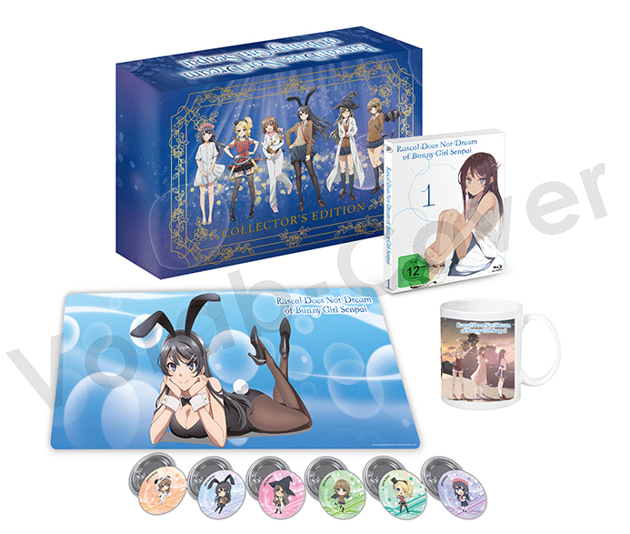 Die Collector’s Edition von „Rascal Does Not Dream of Bunny Girl Senpai“ wird dabei die gleichen Maße (407 mm x 282 mm x 90 mm) besitzen, wie die CE von „Sword Art Online – Alicization“. Das Ganze wird nur als Blu-Ray-Variante exklusiv im AKIBA PASS SHOP erhältlich sein und ist auf insgesamt 500 Exemplare limitiert. Käufer dürfen sich natürlich auf das erste Volume der Serie freuen. Zudem sind ein Postkartenkalender, ein Mousepad (700 mm x 300 mm), eine Tasse sowie sechs Chibi-Buttons (32 mm) als Extras mit an Bord. Kostenpunkt: ca. 80 Euro. Der voraussichtliche Veröffentlichungstermin ist übrigens der 30. September 2019.