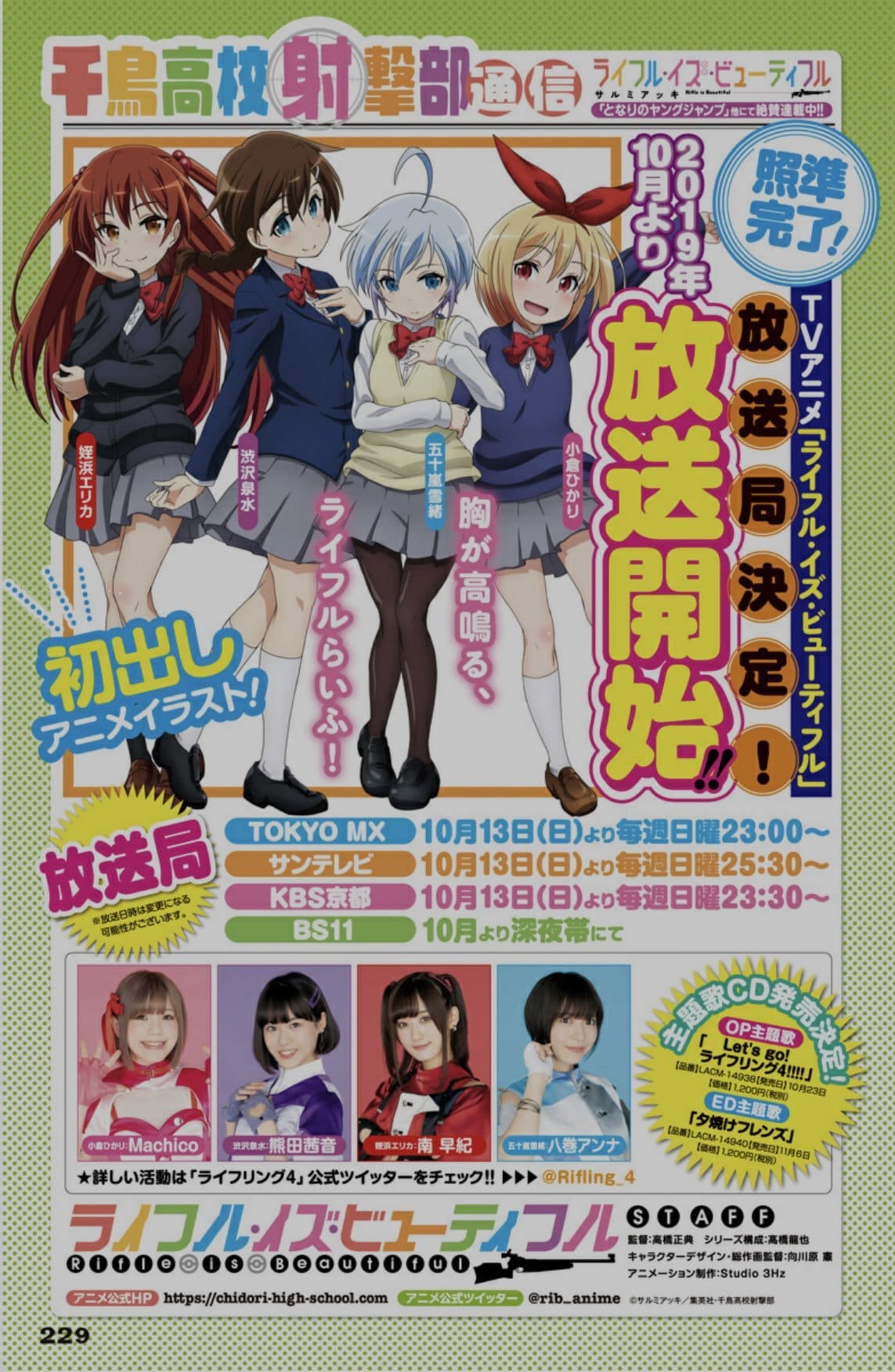 „Rifle is Beautiful“ entsteht unter der Regie von Masanori Takahashi im Studio 3Hz. Für das Charakterdesign zeichnet sich Ken Mukaigawara verantwortlich, während Tatsuya Takahashi die Serienkomposition übernimmt. Die Serie wird ihre japanische TV-Premiere am 13. Oktober 2019 feiern.