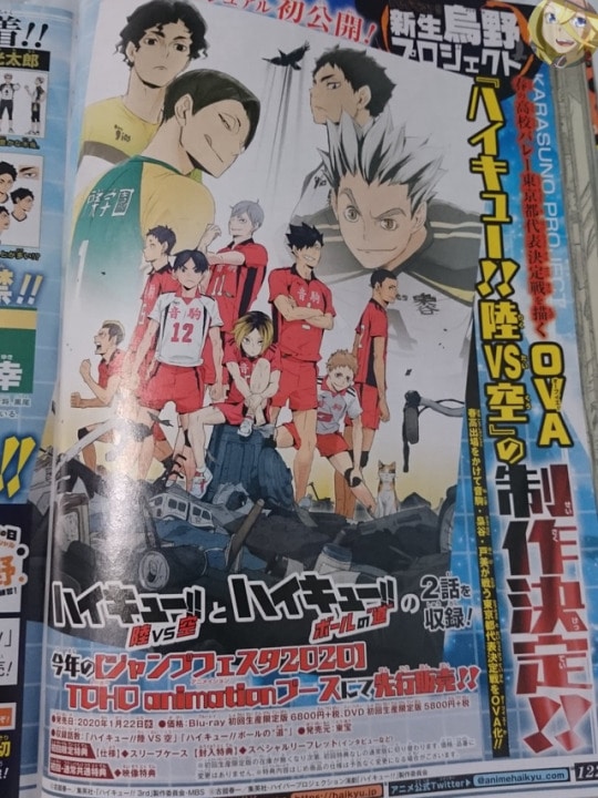 Wie nun in der aktuellen Ausgabe des ,,Weekly Shonen Jump“ Magazins bekannt gegeben wurde, wird ,,Haikyuu! eine vierte Staffel erhalten. Diese soll in Japan im Janaur 2020 an den Start gehen. Zudem wurden mit ,,Land vs. Sky“ und ,,The Volleyball Way“ zwei neue OVAs angekündigt. In Japan erscheinen die OVAs am 22. Januar 2020.