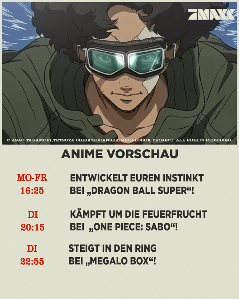 Die AnimeNight, die jeden Freitag bei ProSieben MAXX lief, wurde vor einiger Zeit abgesetzt. Die Senderverantwortlichen kündigten im Züge dessen aber schon an, dass sie ab dem 27. August 2019 immer dienstags laufen wird und dieser Tag ist heute gekommen. Zum Auftakt gibt es gleich ein neues One Piece-Special, das sich um Sabo drehen wird und im Anschluss startet die neue Serie Megalo Box.