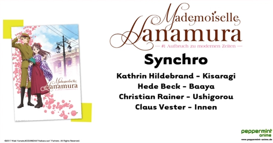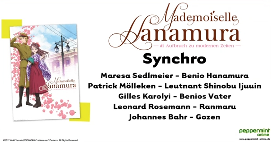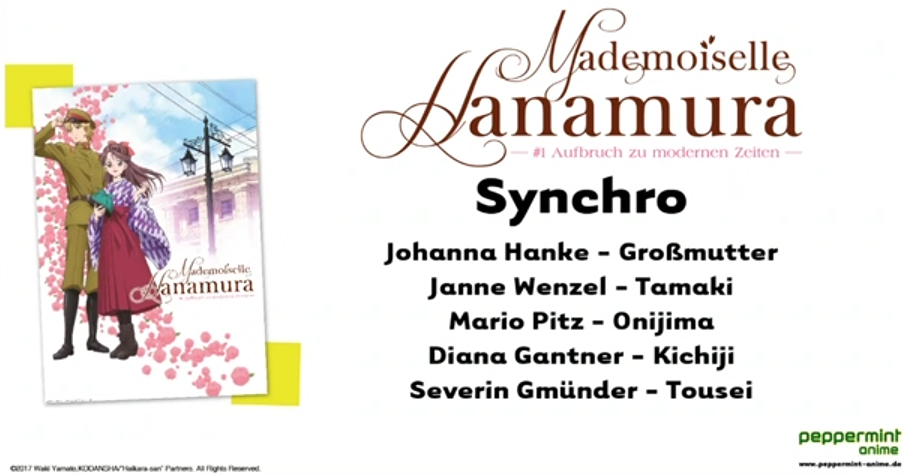 Nachdem der erste Film zu „Mademoiselle Hanamura“ bereits seit einer ganzen Weile vorbstellbar ist, nahm sich Publisher peppermint anime nun die Zeit, den deutschen Cast vorzustellen.