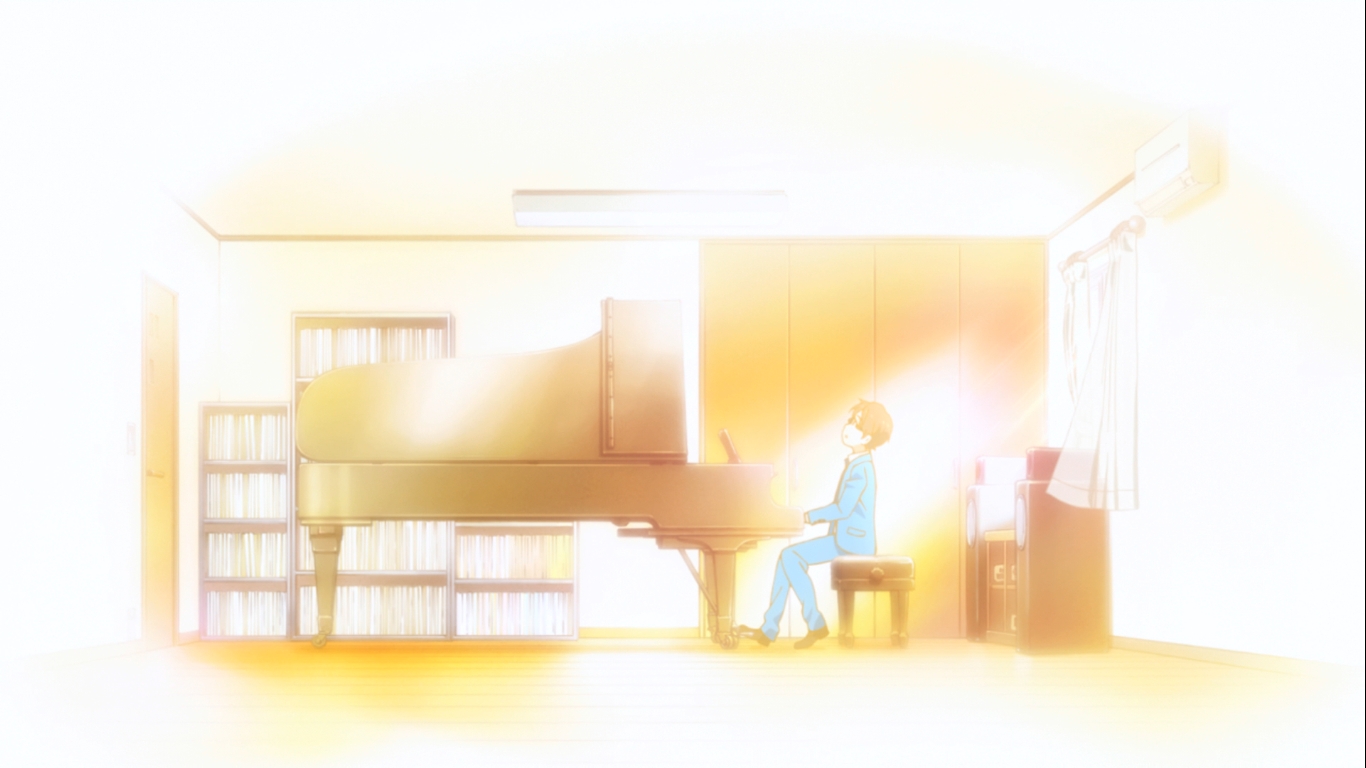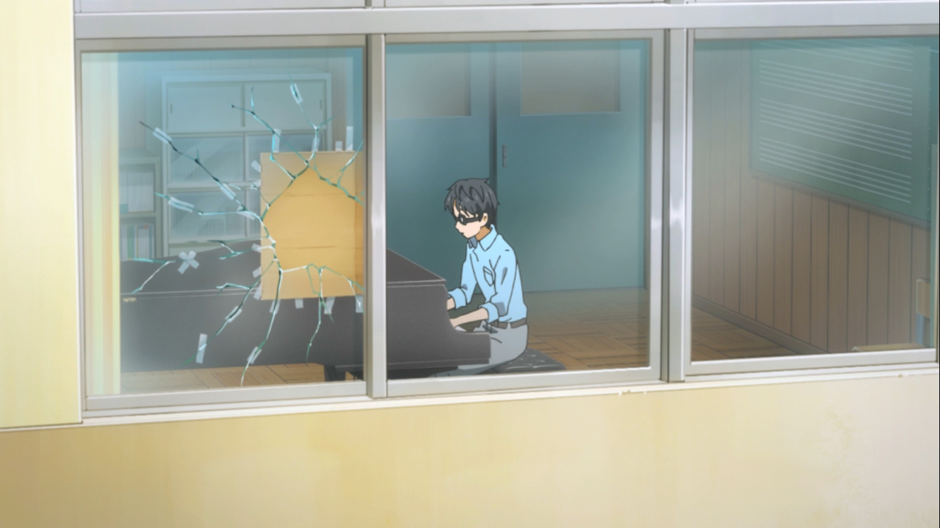 Die Handlung schreitet unerschütterlich voran und mit der Episode wird aber auch ein neuer Abschnitt eingeleitet. Denn einiges ist anders. Auch wenn Kousei immer noch im Vordergrund steht, so ist die Handlung rund um sein Kindheitstrauma und der Verlust seiner Mutter fast abgeschlossen und am Ende von Episode 13 ist er entgültig befreit. Doch dann kommt die Wendung in der Handlung und Kaori liegt im Krankenhaus und hier beginnt die Handlung entgültig auf ein unheilvolles End hin zu steuern.